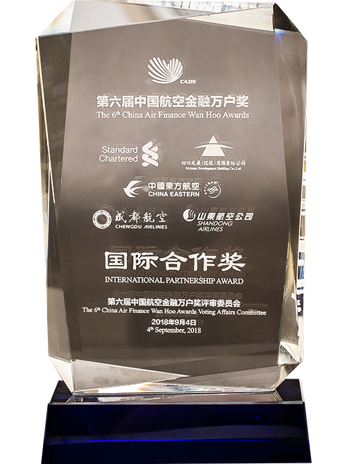 在第六屆中國航空金融萬戶獎評審中榮獲“國際合作獎”